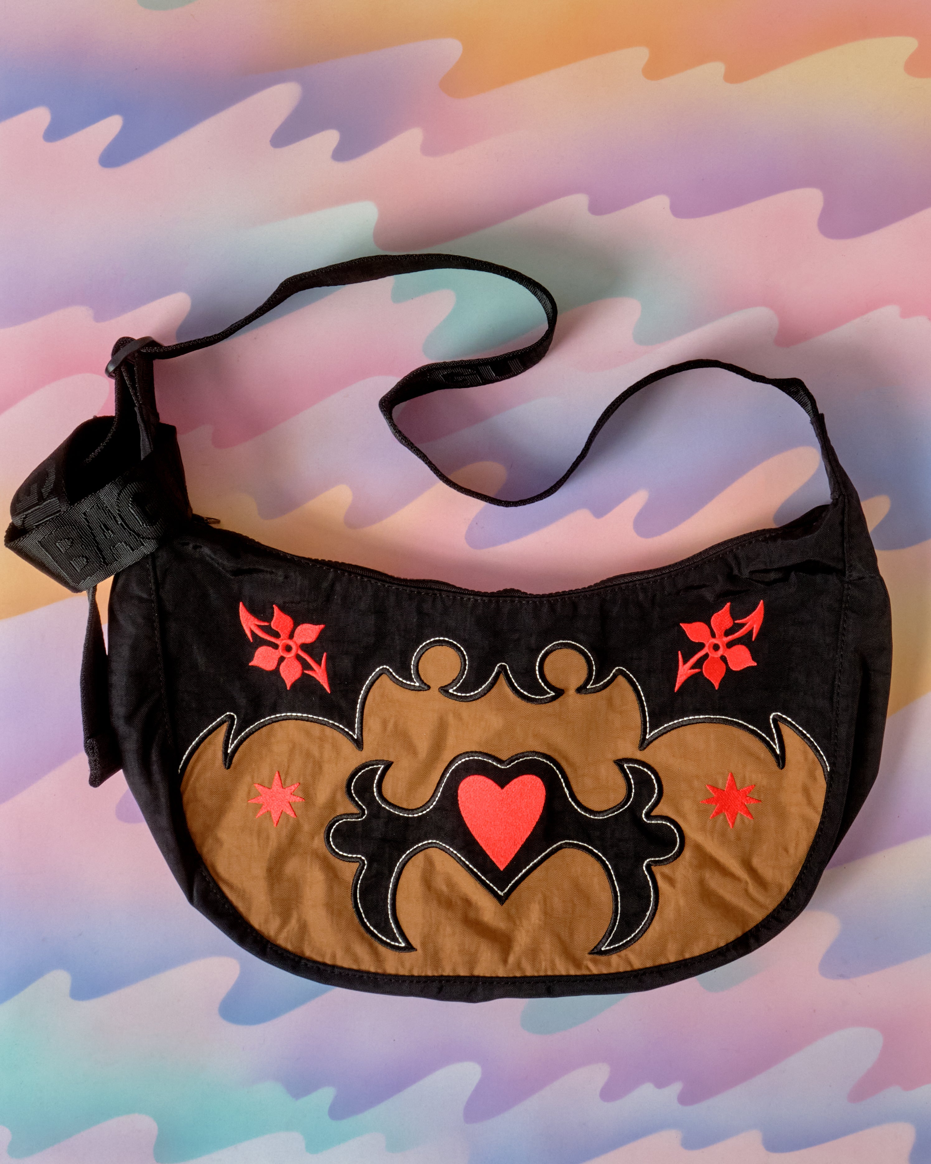 Medium Nylon Crescent Bag - Western Appliqué