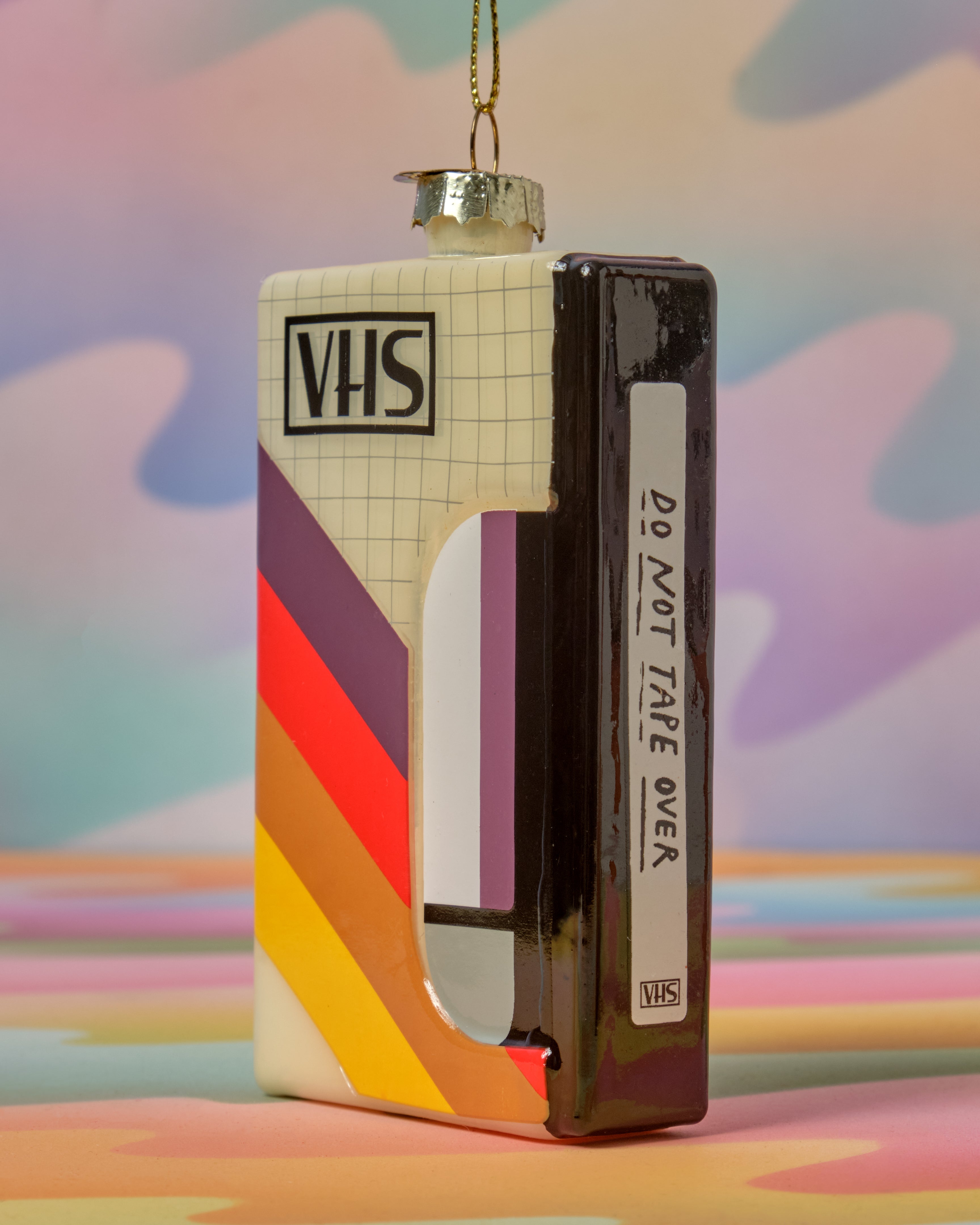 A hand-blown glass ornament by Love & Victory! Comes packaged in a custom made box printed with a retro design.