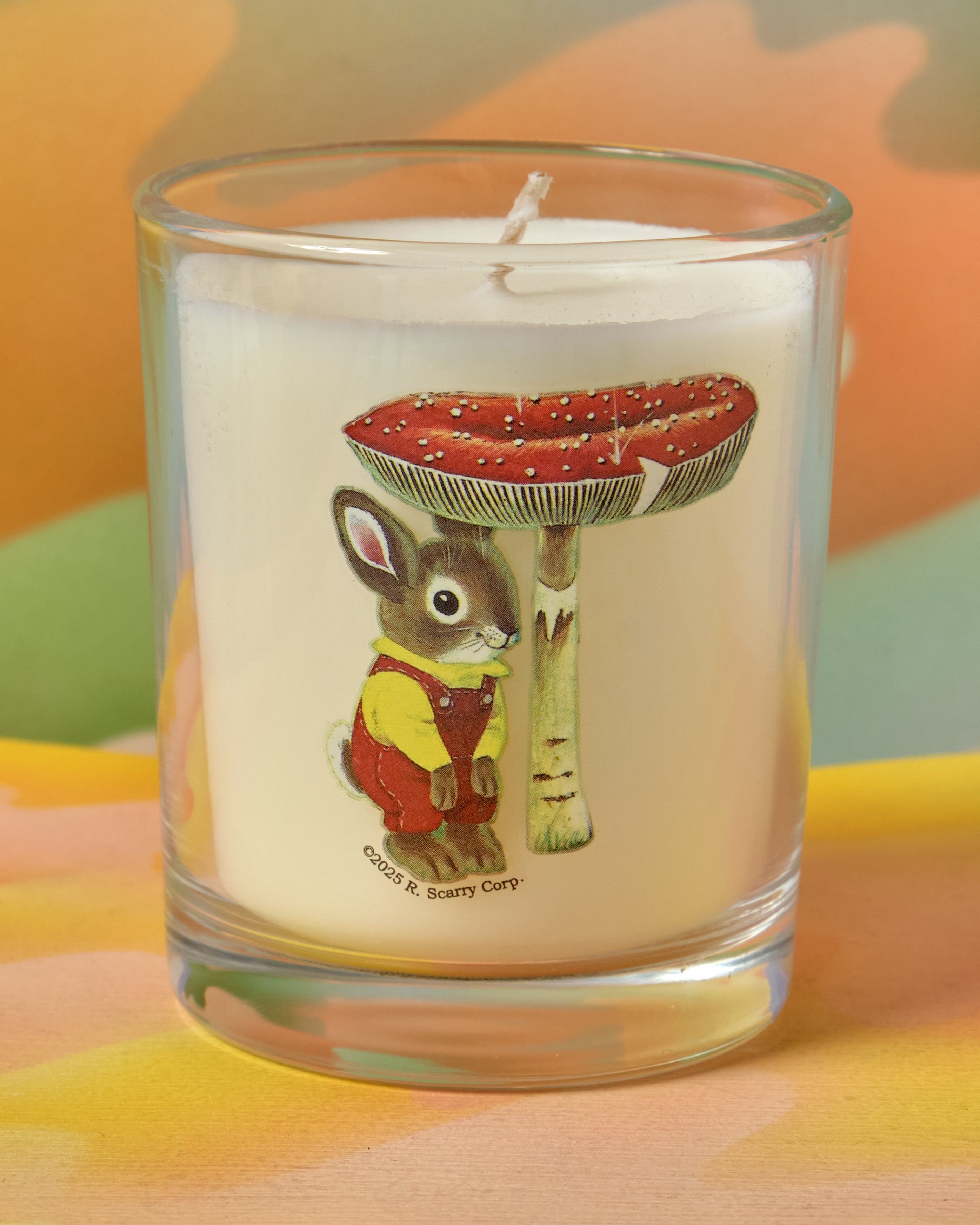 A Richard Scarry candle! This 6 oz candle by Three Potato Four features a sandalwood scent.