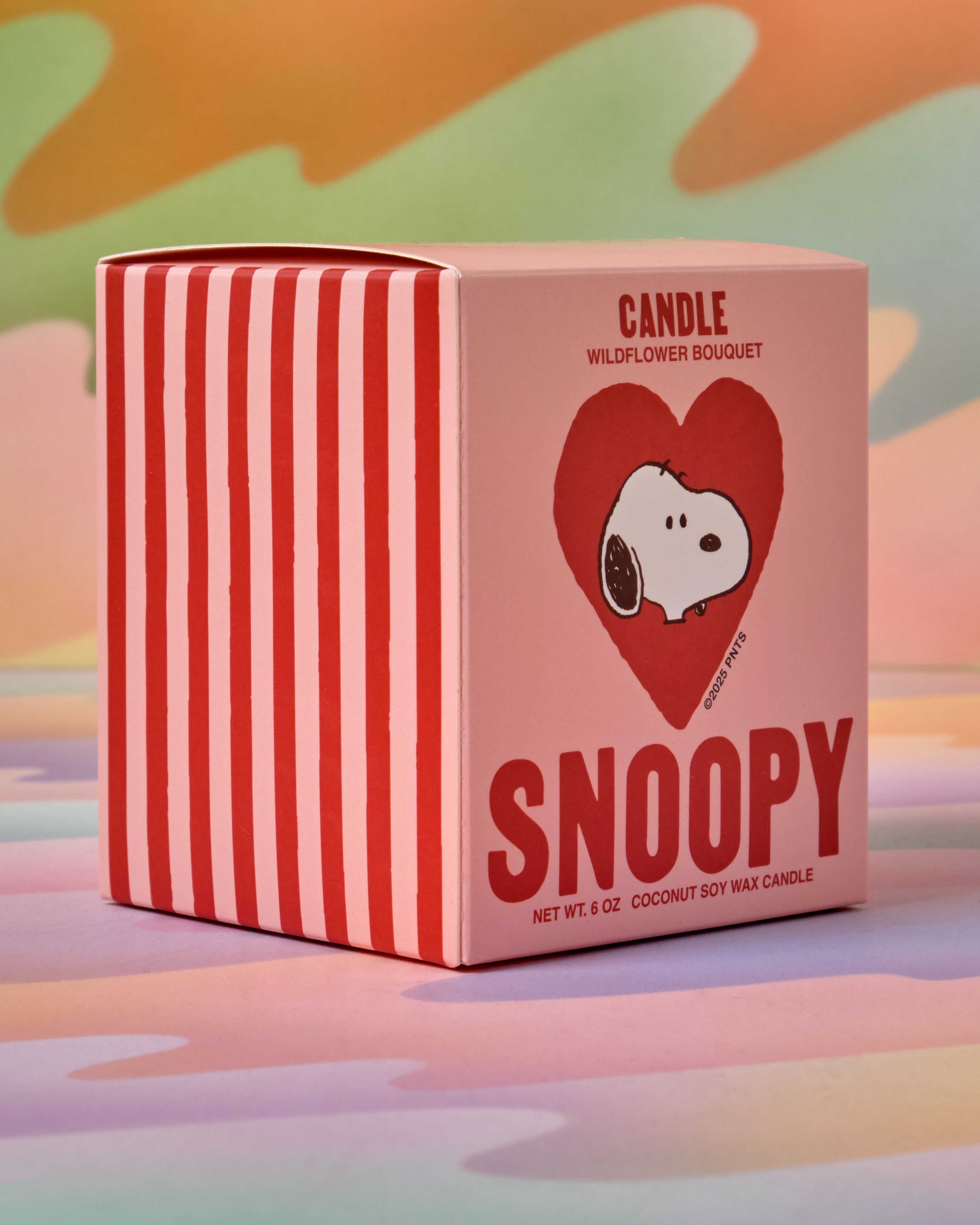A Snoopy candle! This 6 oz candle by Three Potato Four features a wildflower scent.