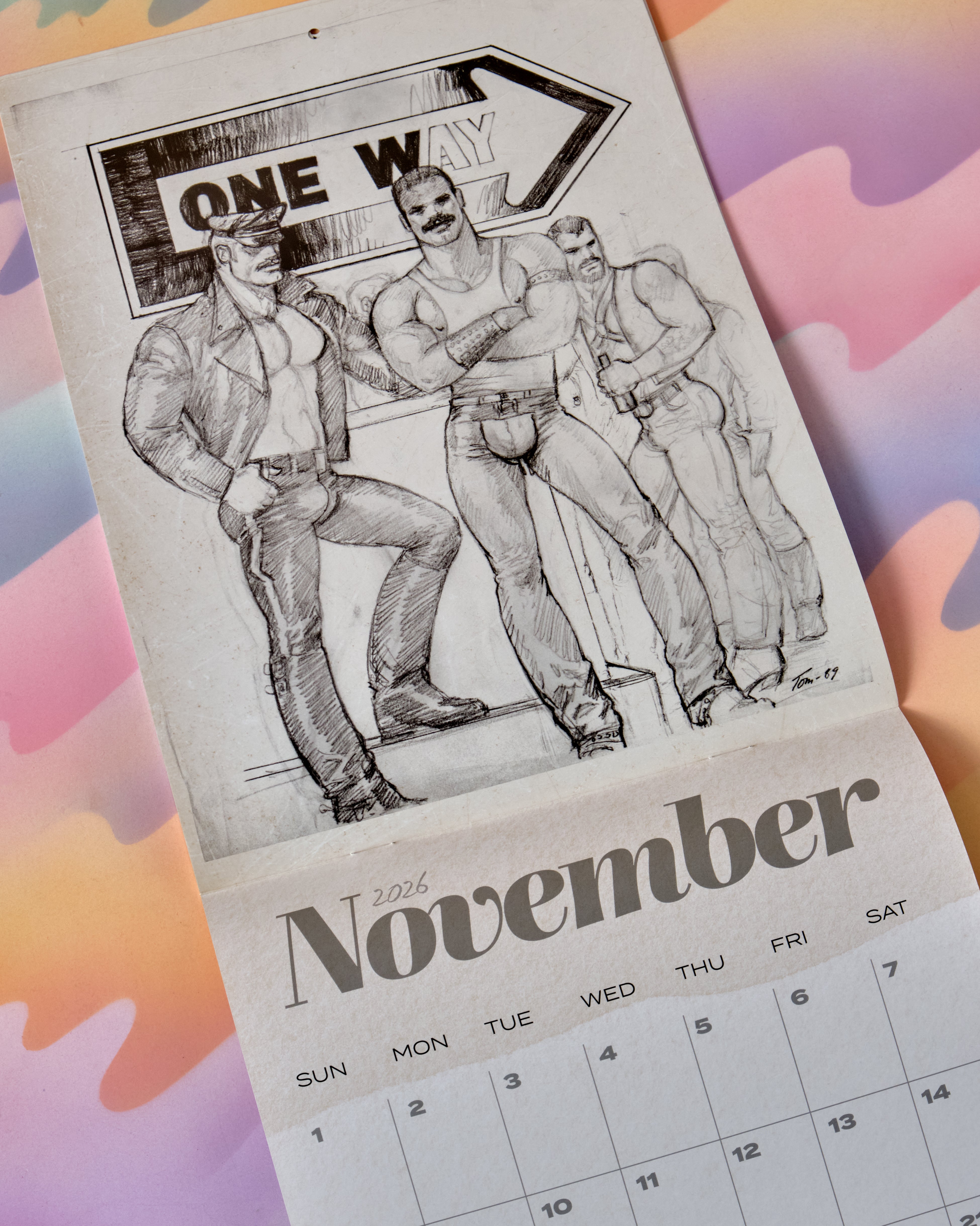 Start the New Year with a bang! 2026 calendar featuring 15 classic Tom of Finland illustrations. Please note, this calendar contains nudity.