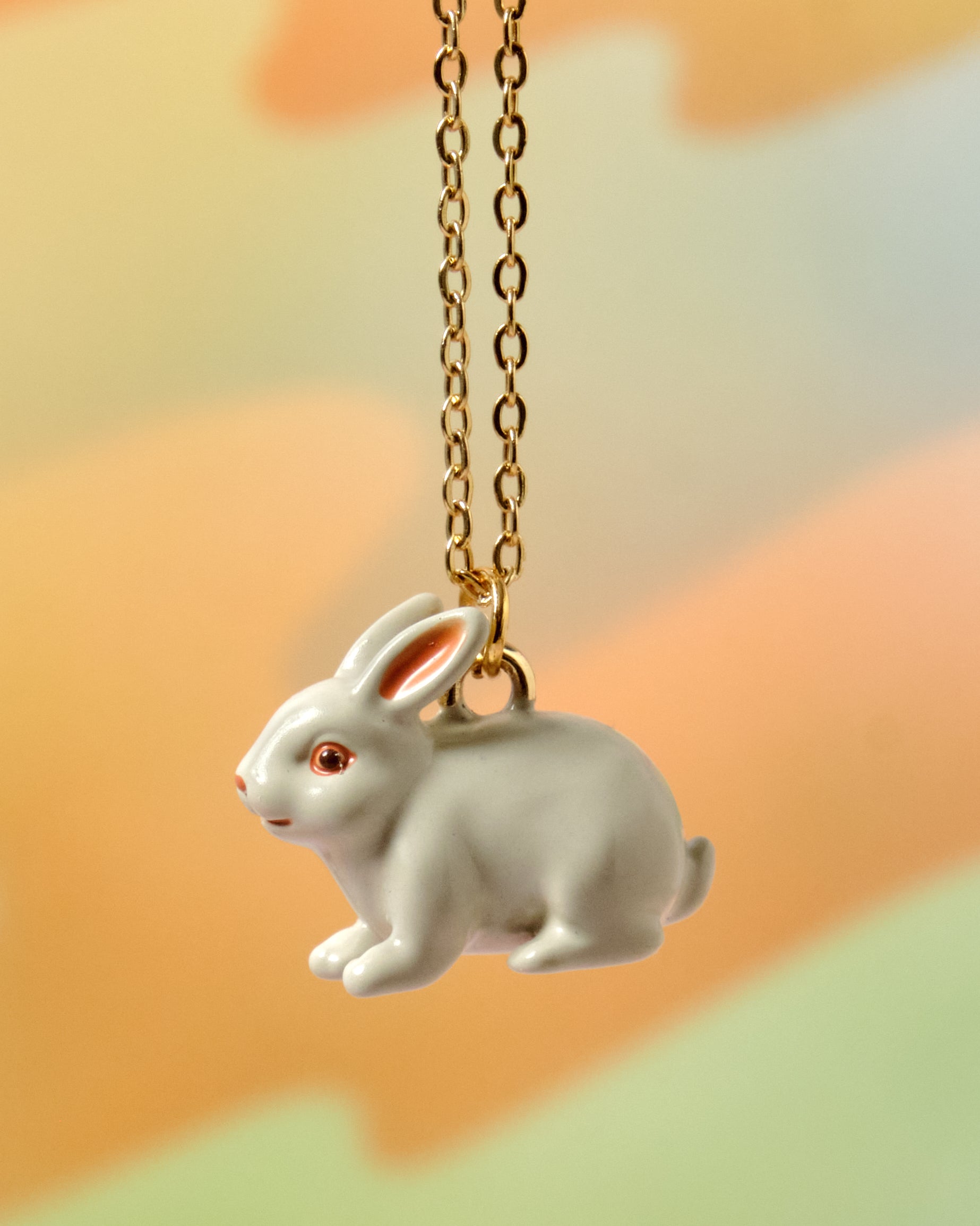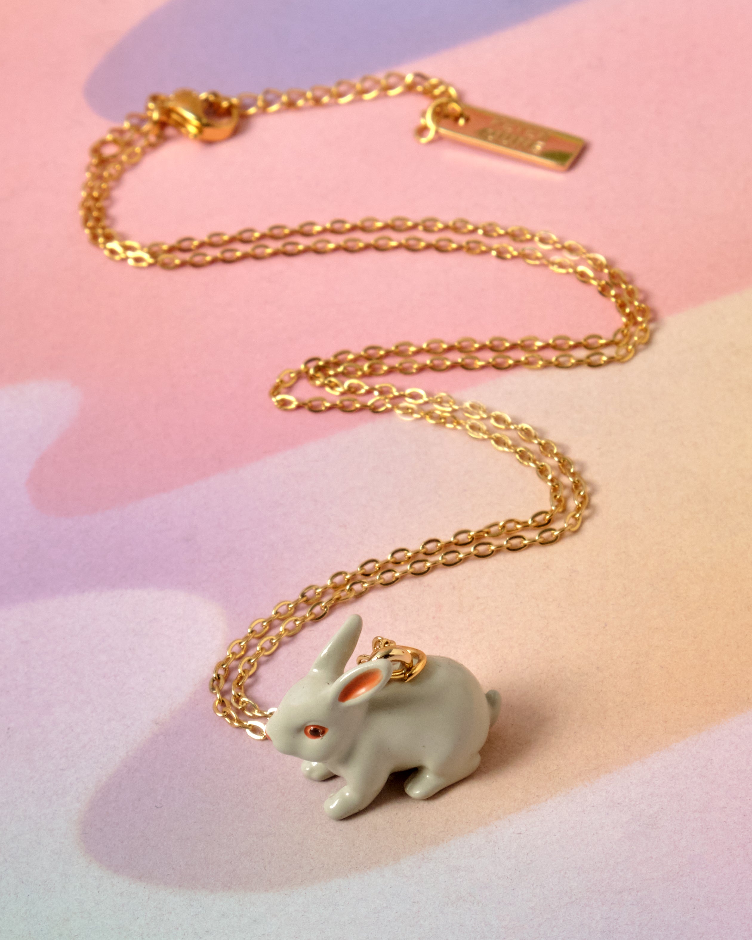 A cute bunny charm necklace from Los Angeles based brand, Peter and June.