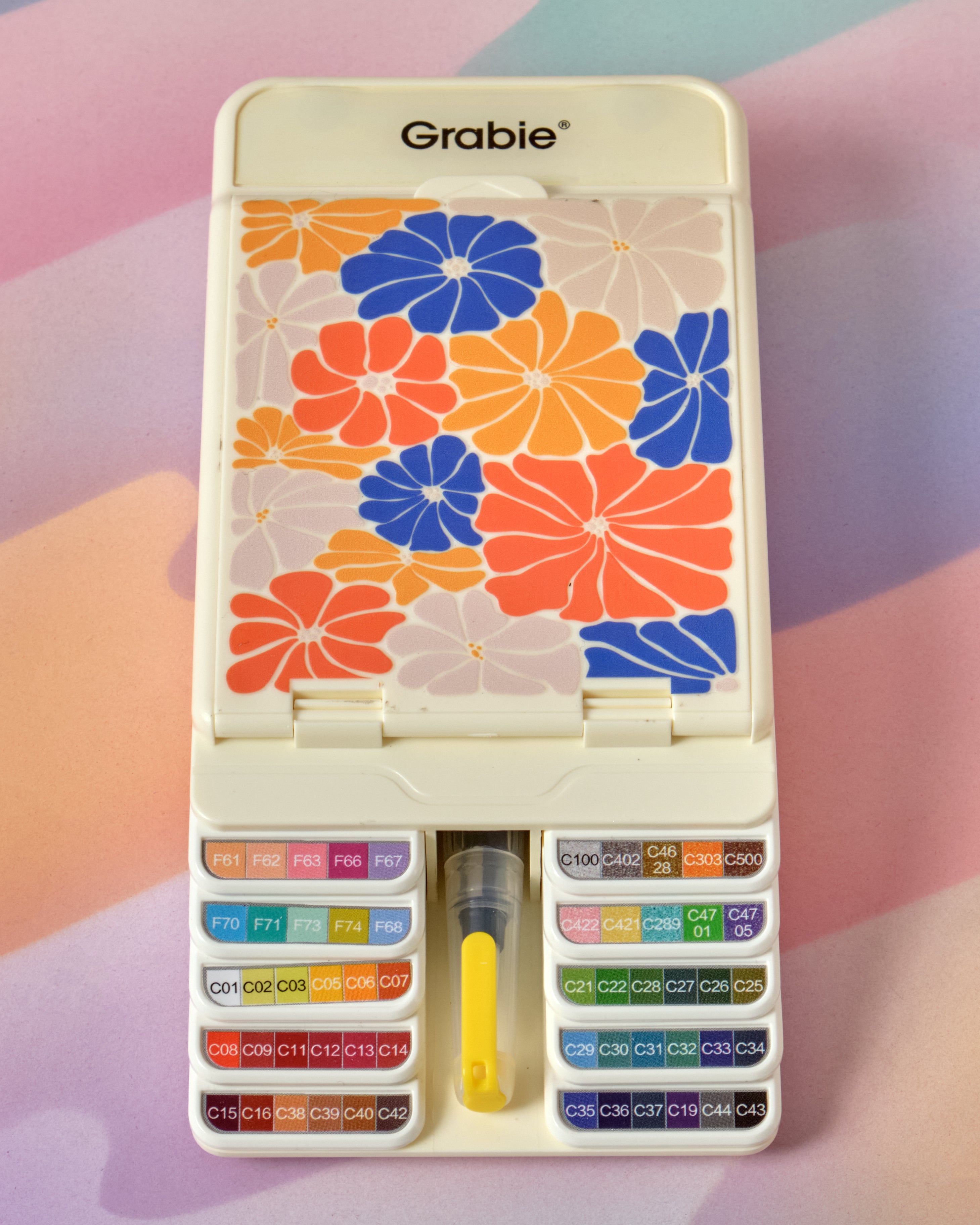 - Set comes with a swatch sheet, mixing palette, removable sponge, and water brush pen